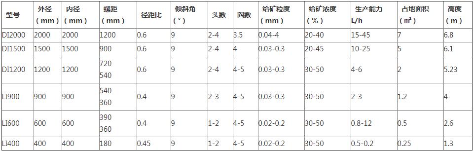螺旋溜槽技術(shù)參數(shù)